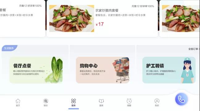 床旁終端的點餐界面和購物、服務(wù)預(yù)約入口