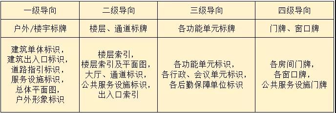 2 標識導向分級宜按下表設置。
