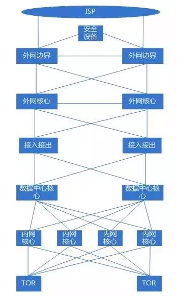 網絡核心設備,框式網絡設備,配備多個40G光口和10G光口等(具體看情況配置),40G光口通過MPO光纖下聯至機房內TOR,40G光口通過MPO光纖上聯至機房數據中心核心設備;