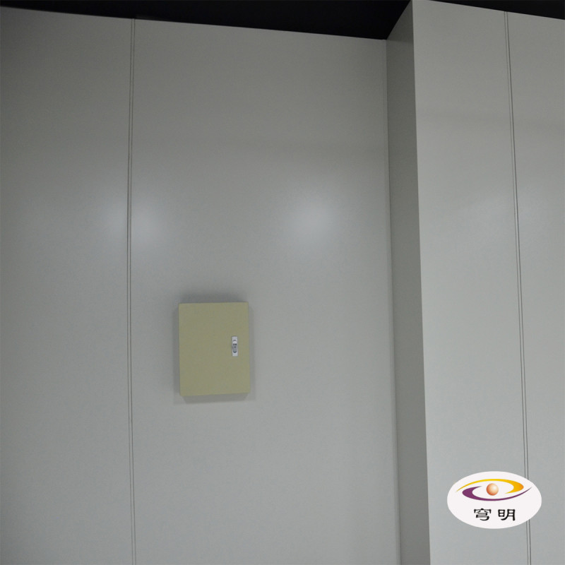 2、由一側開始安裝機房彩鋼板,依次安裝,相連板間距12mm用扣件螺絲固定,隔板之間采用寬度12mm壓條收邊,標準單元墻板均可互換。